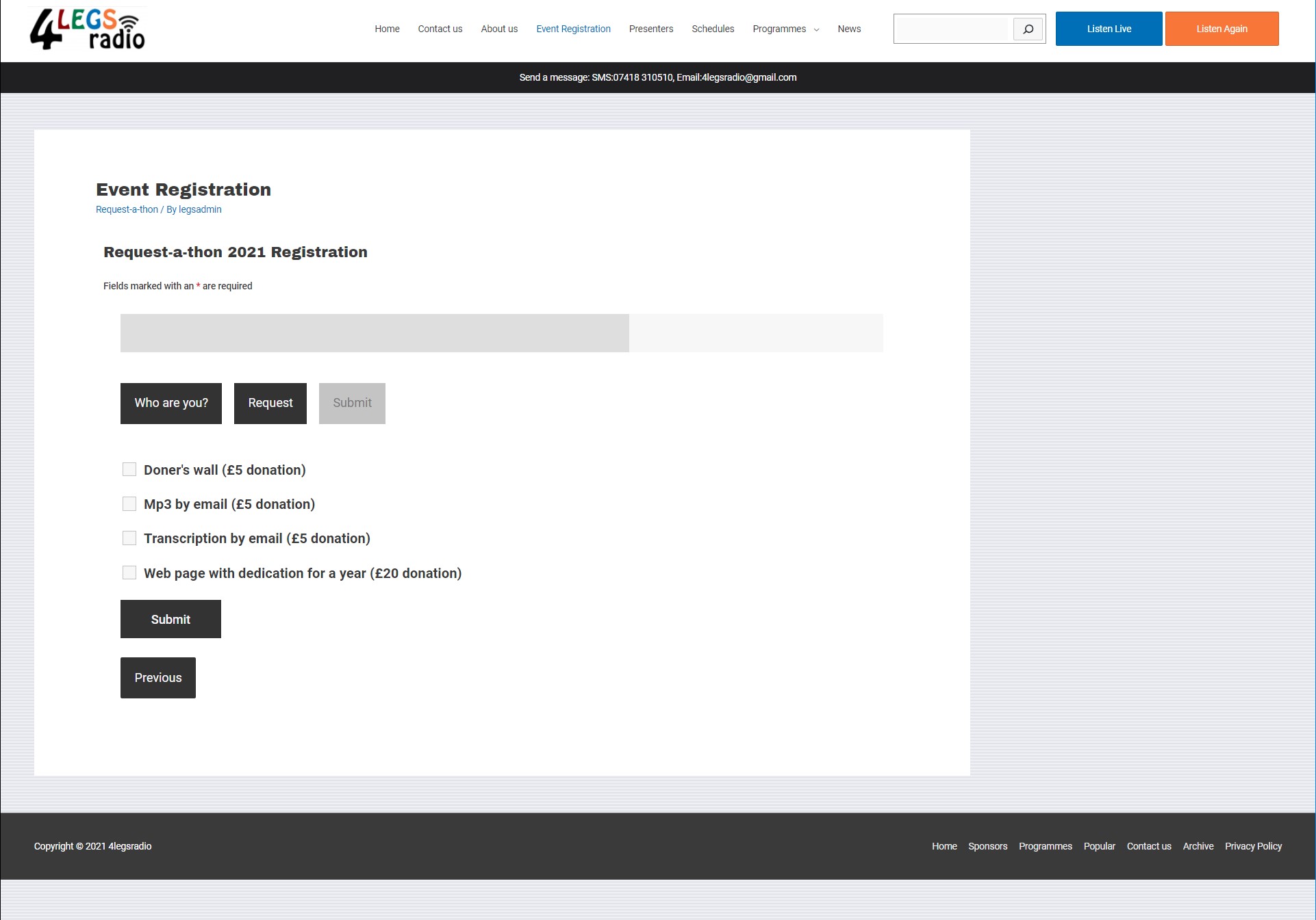 To submit a requestion for a dedication on the 4legsradio Request-a-thon-2022, please complete a simple form in three parts:
