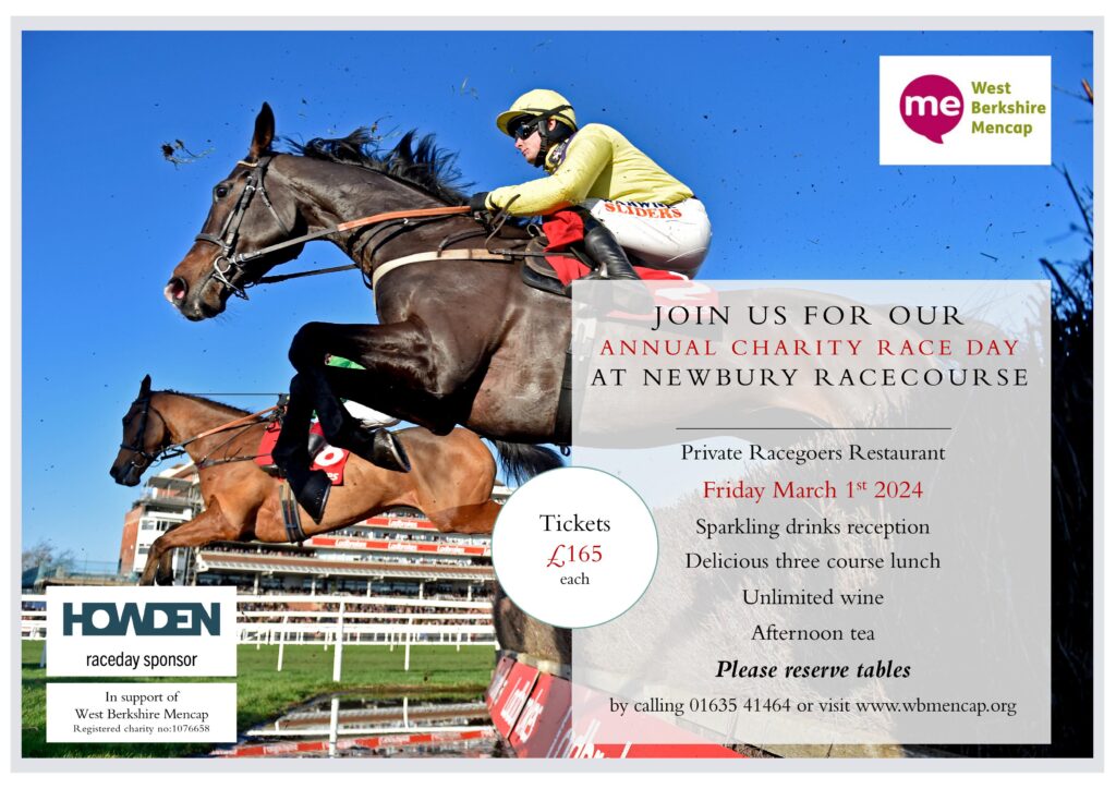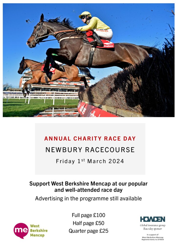 Here’s your chance to support a local charity and have a fantastic day at the races as well. West Berks Mencap in association with sponsor Howden Insurance Brokers invite you to their Charity Raceday on Friday March 1st. So Giddeyup and don’t miss out on this wonderful horse racing experience. See below for details and how to book / reserve your tickets: