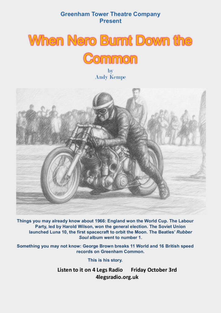 is a humorous and entertaining play tells the story of George Brown who breaks 11 world and 16 British speed records on Greenham Common.